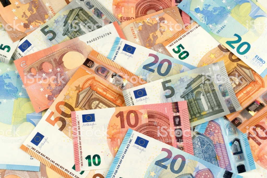 many euro bank note currency finance background